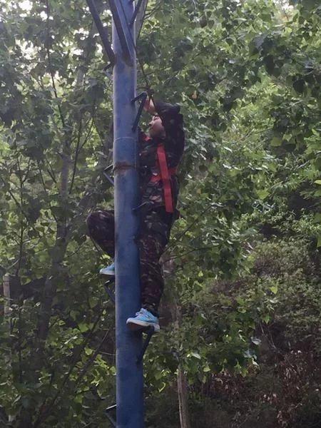 第二日早晨大家洗漱完畢后就開始了自我挑戰的單人項目高空斷橋。這個項目就是在距離地面8米的高空搭起了一座獨木橋,而這個橋的中間卻是斷開的,間距1.2米-1.4米,要求所有隊員爬上8米的高空后,從一側邁到另一側,再按照教練的指示從8米的高空自由降落。目的在于通過活動增強員工面對挑戰時應具備的生存能力和適應能力,從而提升員工的綜合素質和無限潛能。適應變化,主動變化。